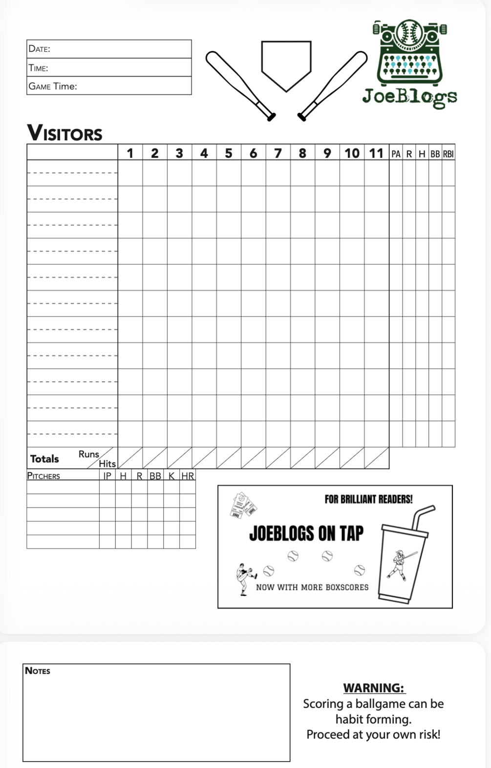 This is the JoeBlogs Scoresheet — as designed by Liz from Diamond Scorecard Dseigns — to be used for our JoeBlogs scoring celebration! You can also download Liz's "How To Score" sheet for free.